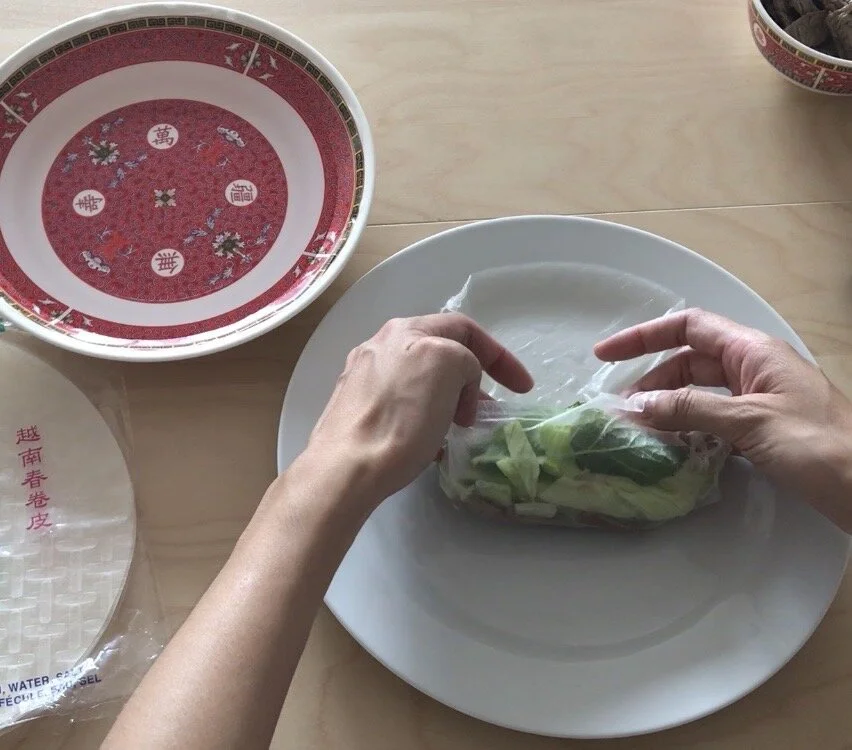 Fill the rice paper with your favorite pre-prepared ingredients.
